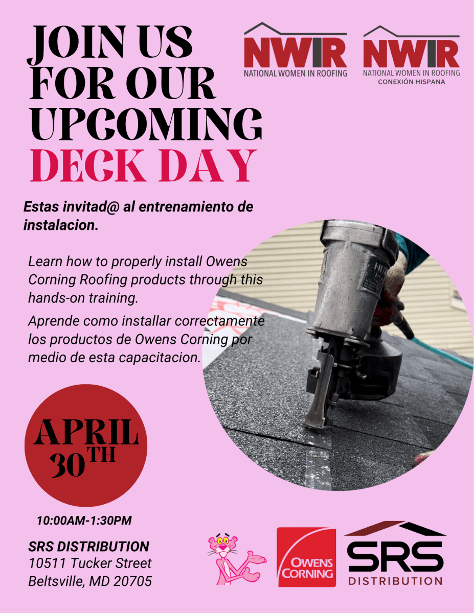 Join us for an empowering hands-on installation training hosted by the Maryland Council, in collaboration with Owens Corning and SRS Distribution—designed specifically to support and uplift women in roofing.