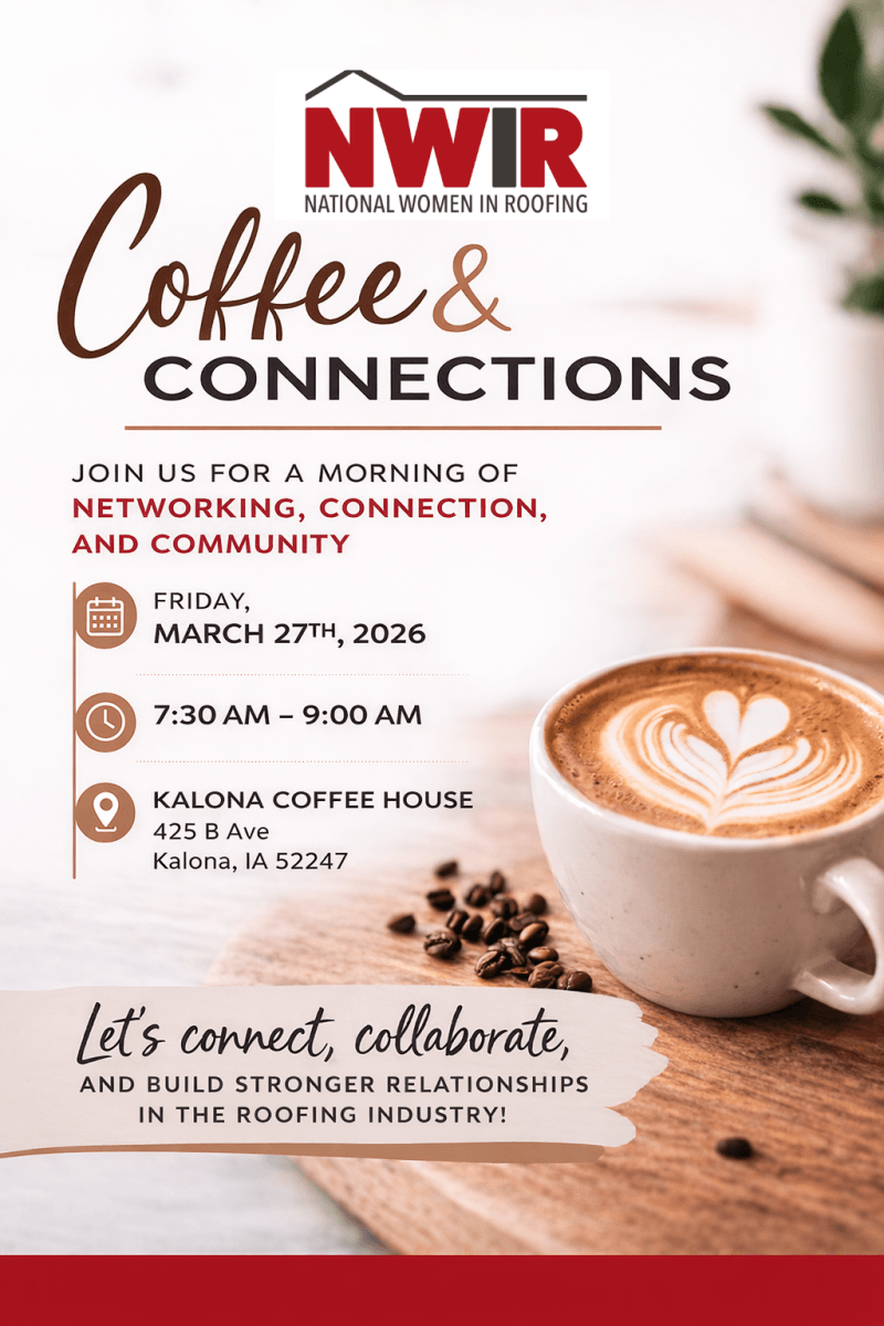 This Coffee & Connections gathering is a great opportunity to meet other women in the roofing industry, share experiences, and grow your network in a relaxed setting.